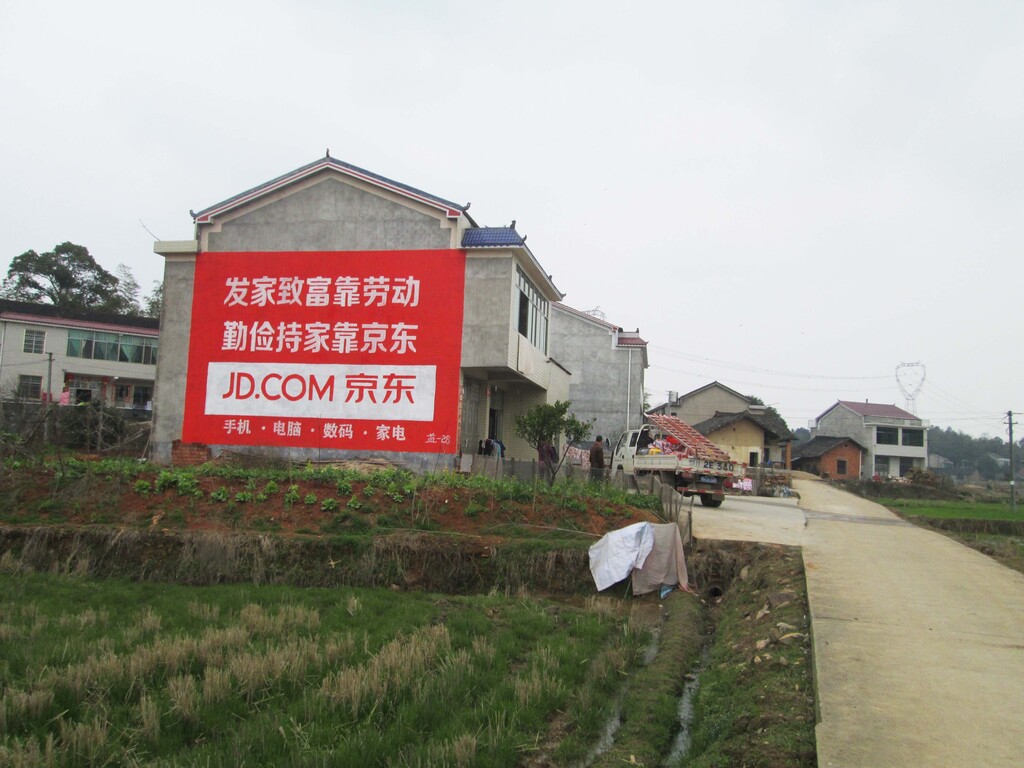 國內電商混戰(zhàn)熱火朝天,雖然電商行業(yè)不斷成熟并且強者恒強,但后來者依然尋找著新機遇。而作為電商界的龍頭老大——京東商城也在不遺余力地推動產(chǎn)業(yè)轉型,占據(jù)農(nóng)村這片亟待開發(fā)的廣袤市場資源成為具有敏銳嗅覺電商最新的追逐目標,而這一目標的實現(xiàn)卻是依賴在公路兩旁、樓宇墻面醒目閃耀的農(nóng)村戶外墻體廣告。
