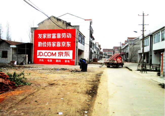 春節(jié)前夕,京東商城真正開始了在湖北、湖南、河南、江西的農(nóng)村戶外墻體彩繪廣告之旅,僅僅不到一個(gè)月的施工時(shí)間,“發(fā)家致富靠勞動(dòng)、勤儉持家靠京東”的響亮口號(hào)刷偏了十萬平方米的城鎮(zhèn)墻壁,持續(xù)了7個(gè)月的戶外農(nóng)村墻體廣告宣傳,使受眾面數(shù)以百萬計(jì),效果直接而明顯。