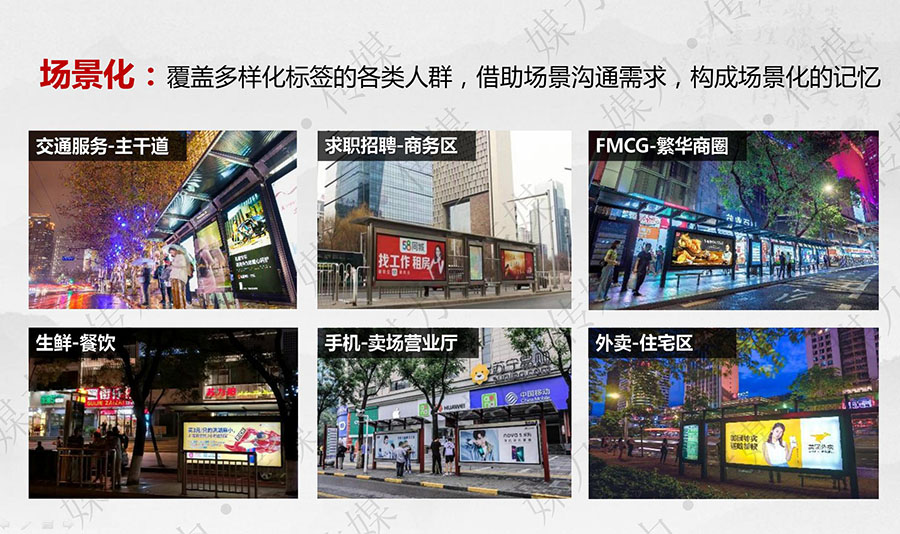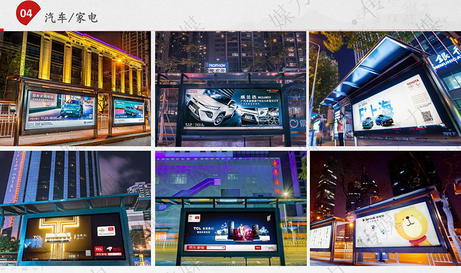 新干線廣告的廣告位是在各個公交候車亭燈箱上,該廣告位被受眾接觸的幾率大,占據(jù)著人流的聚集區(qū),同時也是大多數(shù)人的必經(jīng)之路,因而很容易吸引人們的注意力,慢慢的就會在人們的潛意識中形成一種深刻的印象。該廣告位能夠直接面對受眾,同時貼近廣大人民群眾的生活,廣告影響力非常大。